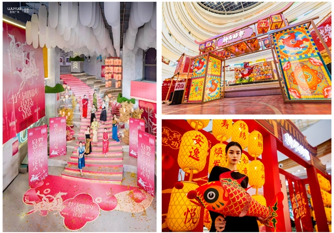 “非遗”不是贴在墙上的标签,而是可体验、可互动、可传播的场景内容。吾悦东北以“驷时轮转·光织锦年”为主题,将剪纸、民艺、地方民俗等元素,转化为美陈装置、市集体验、互动打卡等多元触点。年货市集还原传统赶集氛围,同时引入文创、潮玩等年轻化内容;元宵游园结合灯谜、手作、演出,形成沉浸式游逛体验。文化也因此不再是背景板,而成为连接人、货、场的情感介质。